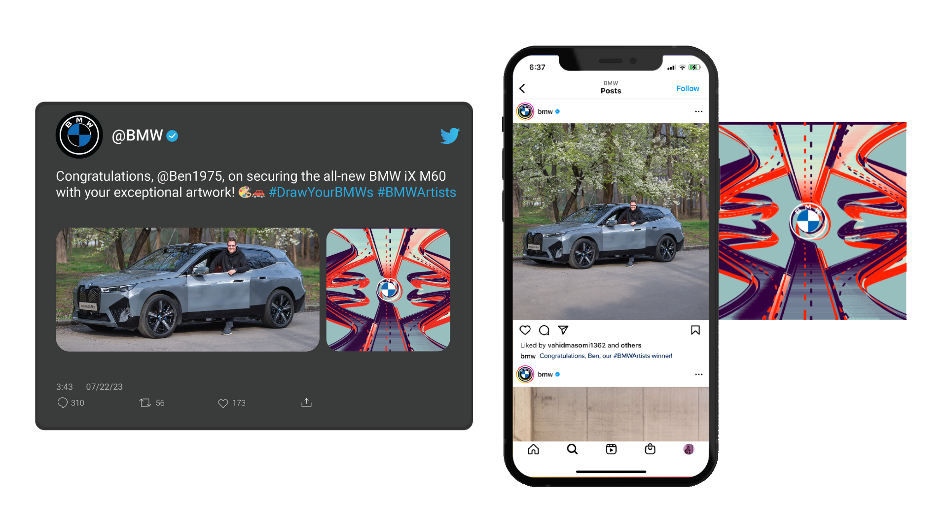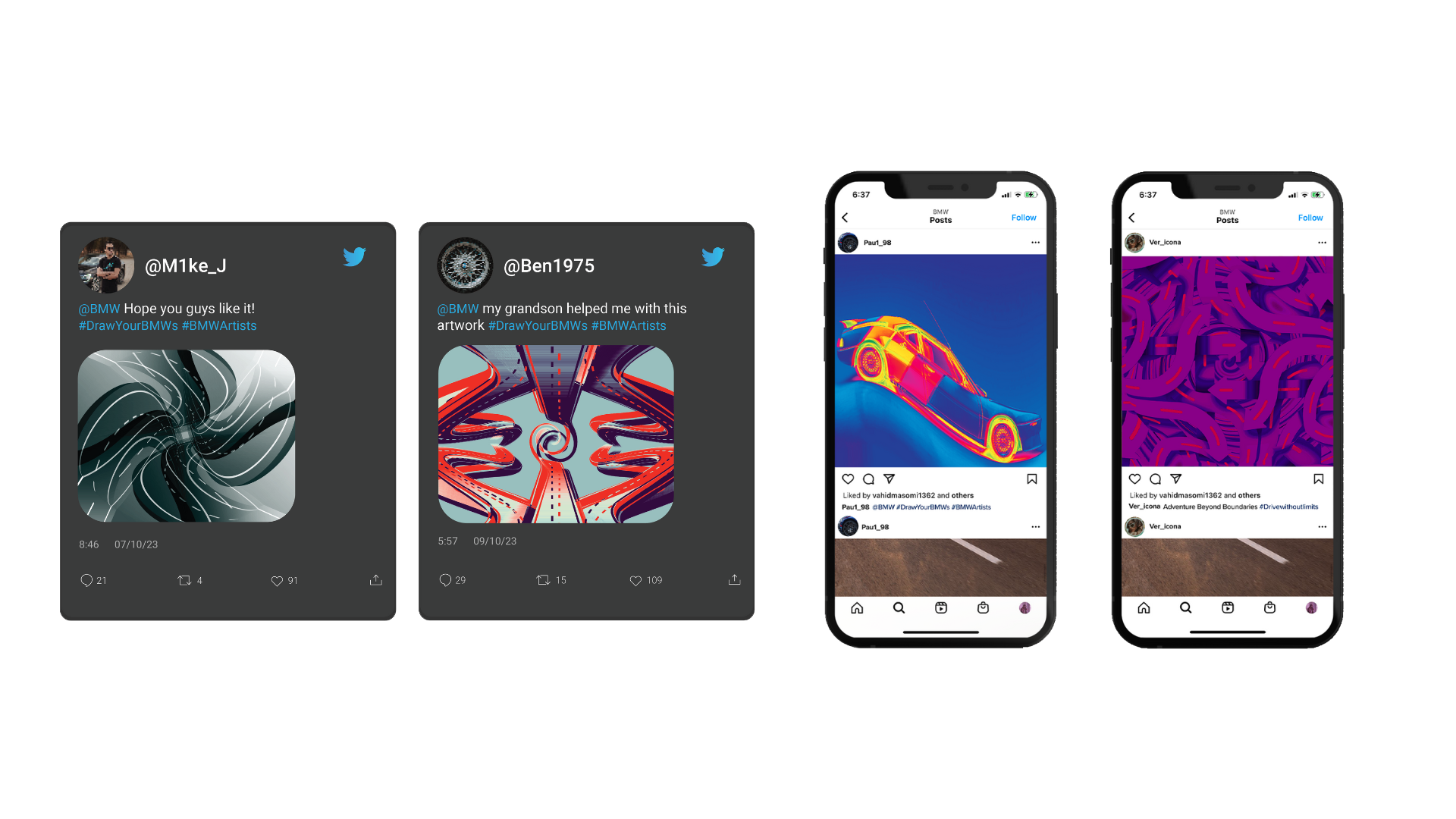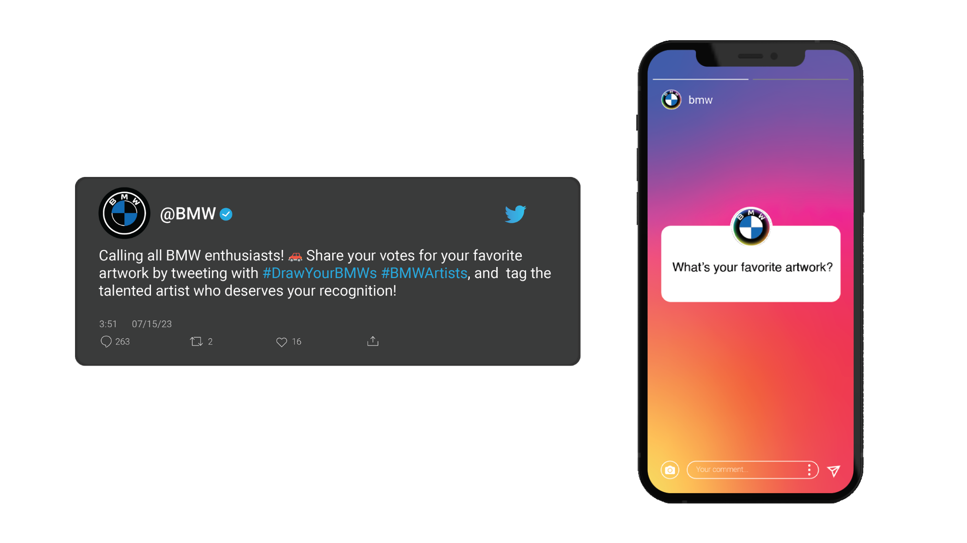 BMW is known for visual storytelling and engaging with fans on social media through new products, showcasing brand values, and featuring fans’ cars. The #BMWArtists campaign aims to boost engagement and excitement among BMW’s loyal fans by allowing creativity to shine and express how fans feel while driving a BMW. This initiative paves the way for not only BMW but also its fans to share their visual stories. BMW empowers fans by offering them the opportunity to connect through creative means such as using a paintbrush or digital tools.
